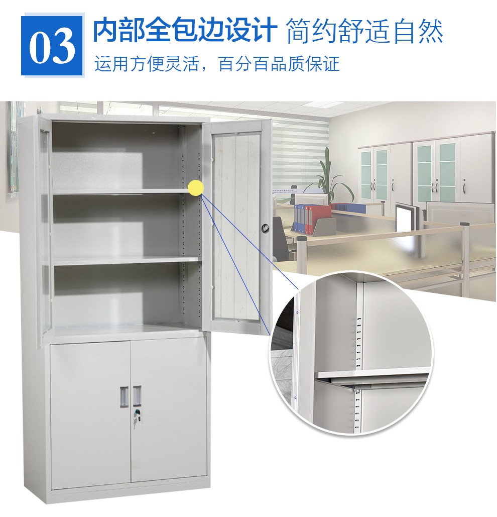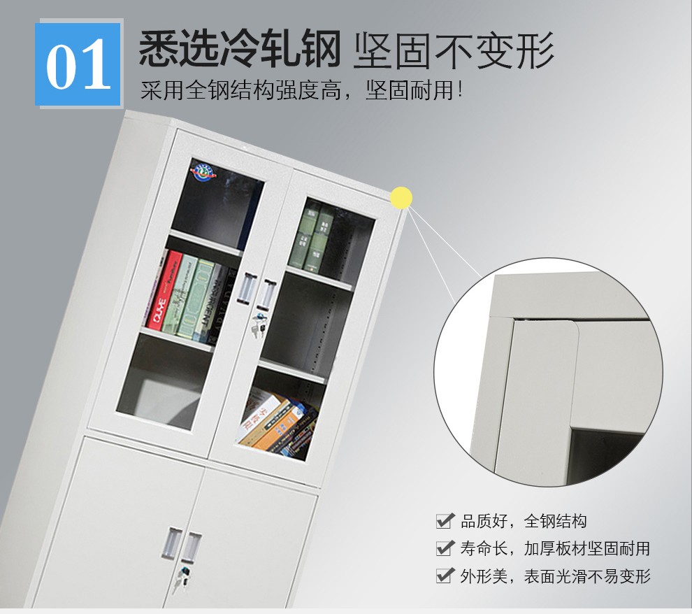 通体玻璃门铁皮文件柜1门1锁4隔板0.5加厚冷轧钢板材
