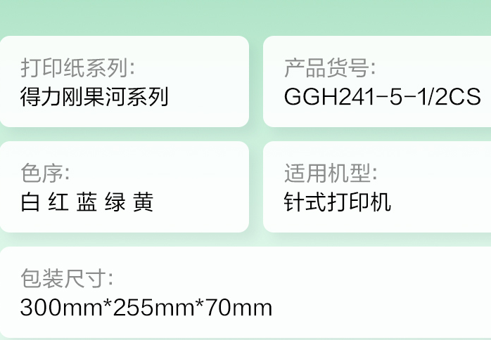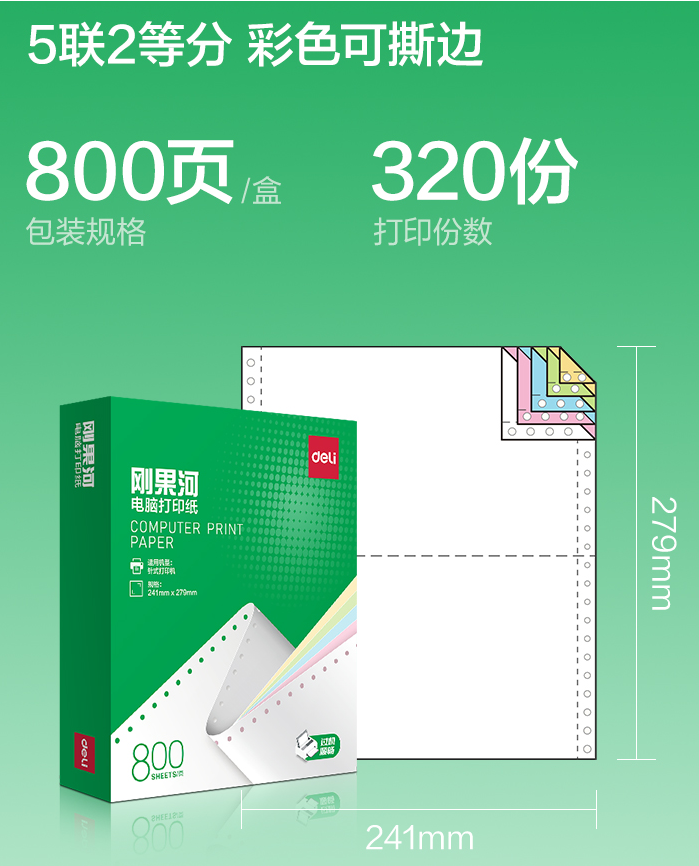 GGH241-5电脑打印纸(1/2CS彩色撕边)(800页/盒)