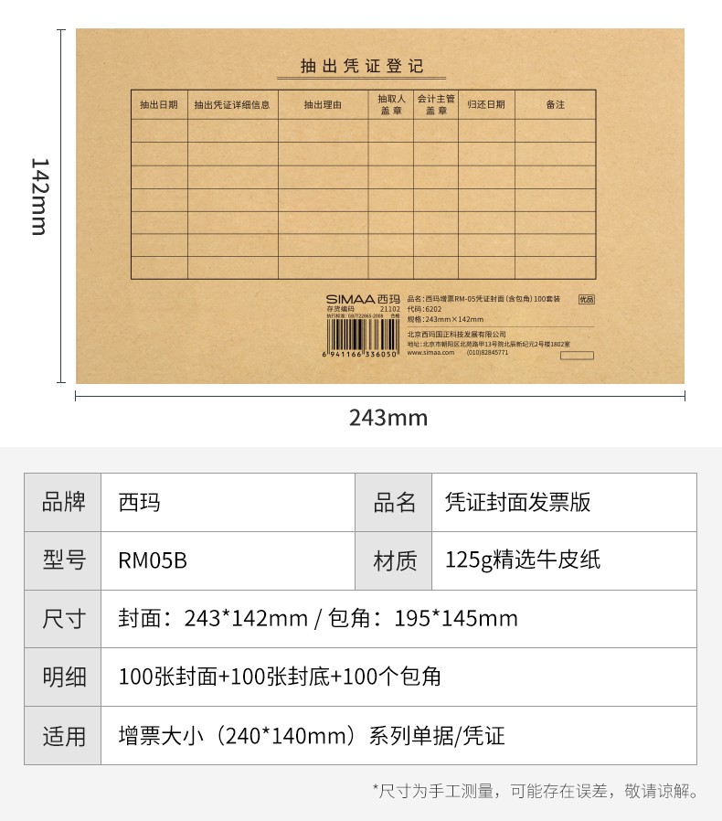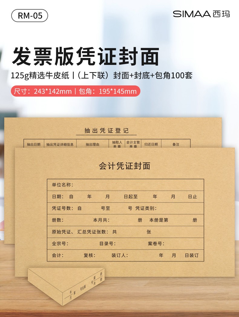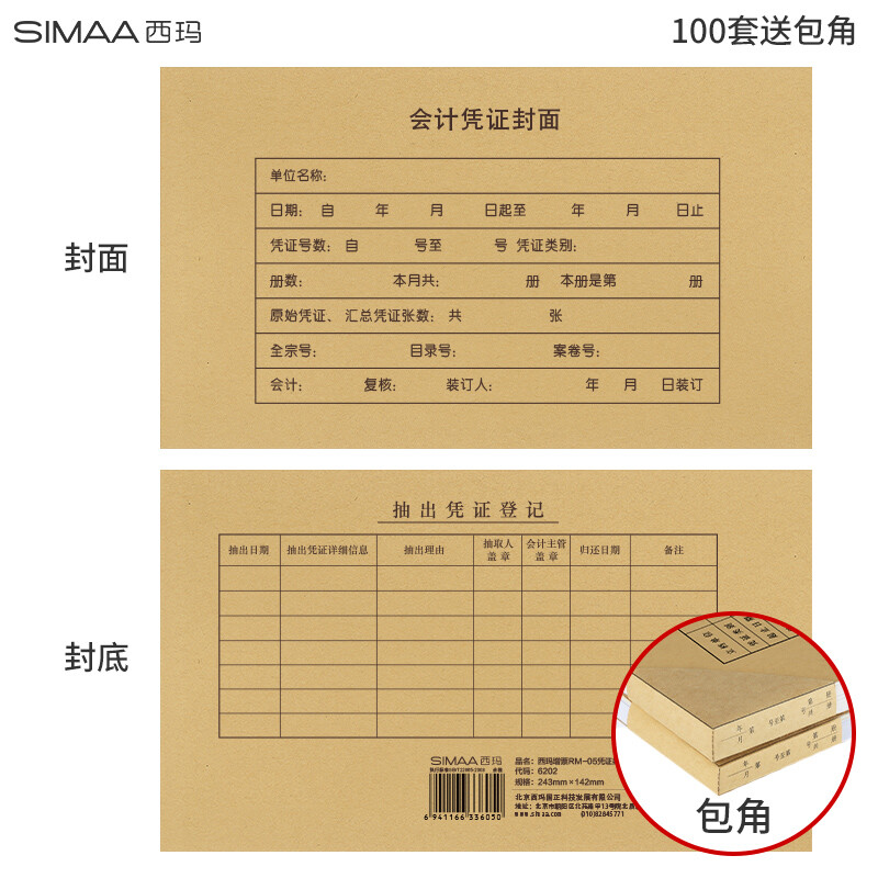 西玛RM-05 凭证封面100套+ 包角 发票版 243*142mm