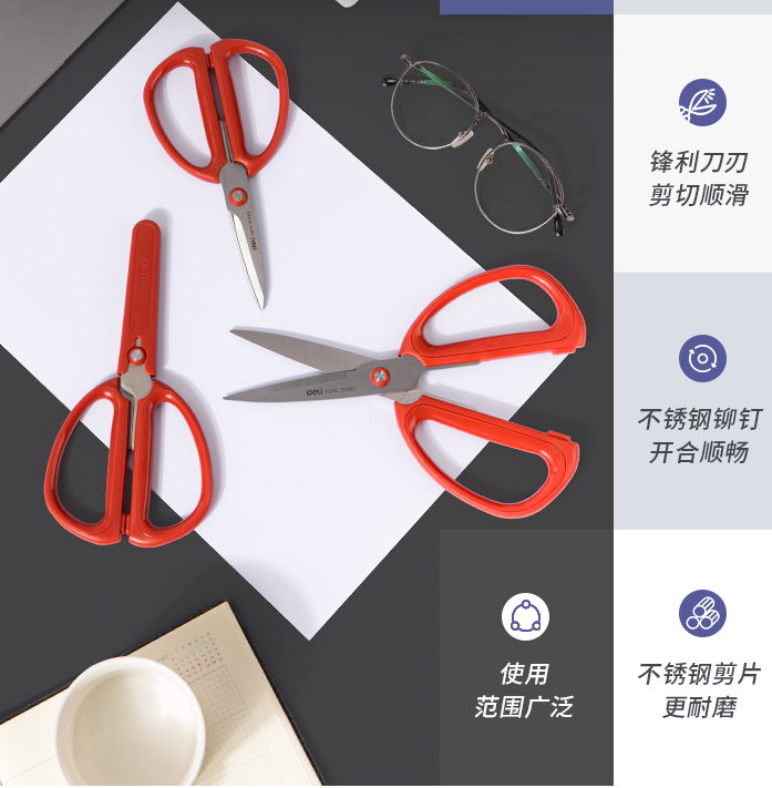 得力TJ10家用剪刀(红)(把)156mm