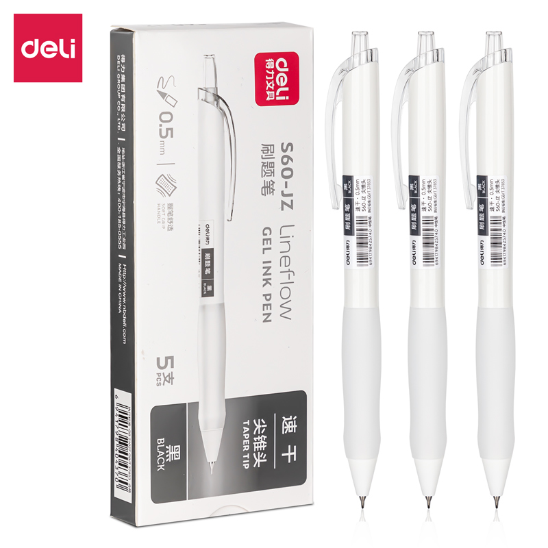 得力S60-JZ速干顺滑按动中性笔0.5mm尖锥头(黑)